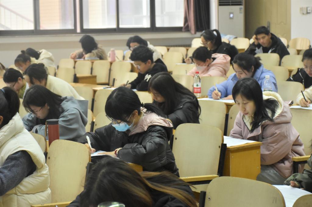 本次考试采取自愿报名原则,并严格按照全国大学英语四六级考试流程进行,旨在为同学们提供一个实战模拟考场,让同学们提前熟悉四六级考试题型及试题顺序。考试过程中,监考人员本着公开、公平、公正的原则,严谨认真,细心体贴,切实做好座位安排、试卷答题卡收发、听力播放等具体工作,有序维护考场秩序,为同学们创造良好的考试环境。考生自觉遵守考场规则,服从监考人员安排,态度端正,一丝不苟。130分钟的考试时间缓缓流逝,最终在考试结束的通知中圆满结束。同学们携带试卷和答题纸有序退场。考试结束后,同学们纷纷表示:“考试听力难度较大,但是通过本次模拟考试明确了接下来的备考的努力方向及目标,将充满信心做好英语四六级备考工作。”